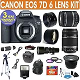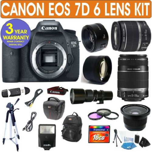 Canon EOS 7D + Canon 18-55mm Lens + Canon 55-250mm Lens + 500mm Preset Lens + Canon 50mm Lens + .40x Fisheye Lens + 2x Telephoto Lens + 3 Year Celltime Warranty Repair Contract Feature | Sale - Review & Buy at Cheap Price